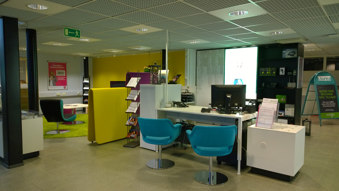 Toimistojen ja myymälätilan sisustussuunnittelu Lounea Oy:n toimitiloihin Forssaan ja Saloon.