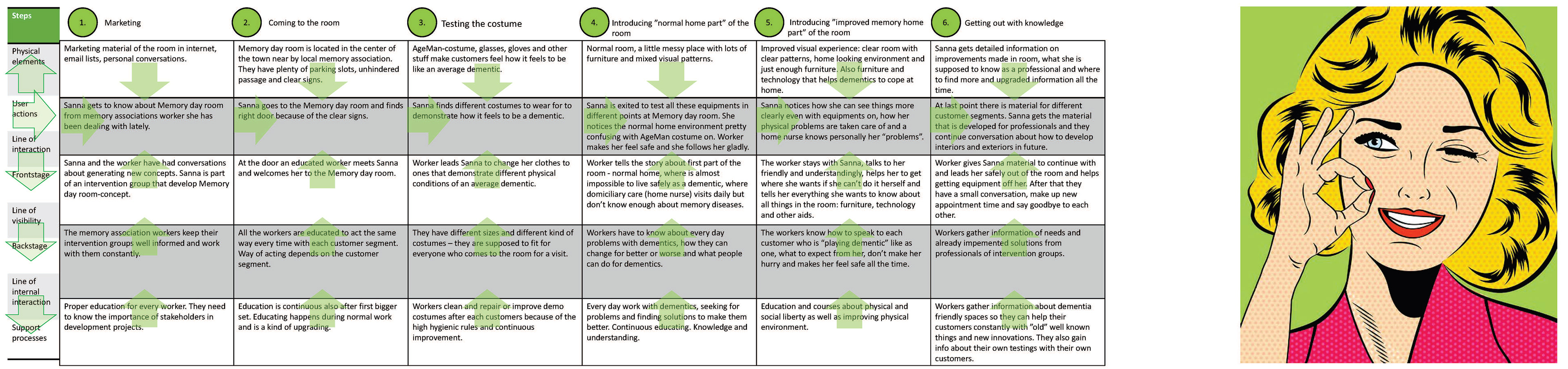 Muistiystävällisen koulutustilan palvelumuotoilu, käyttäjäkokemussuunnittelu ja käyttöliittymäsuunnittelu (fyysinen tila).